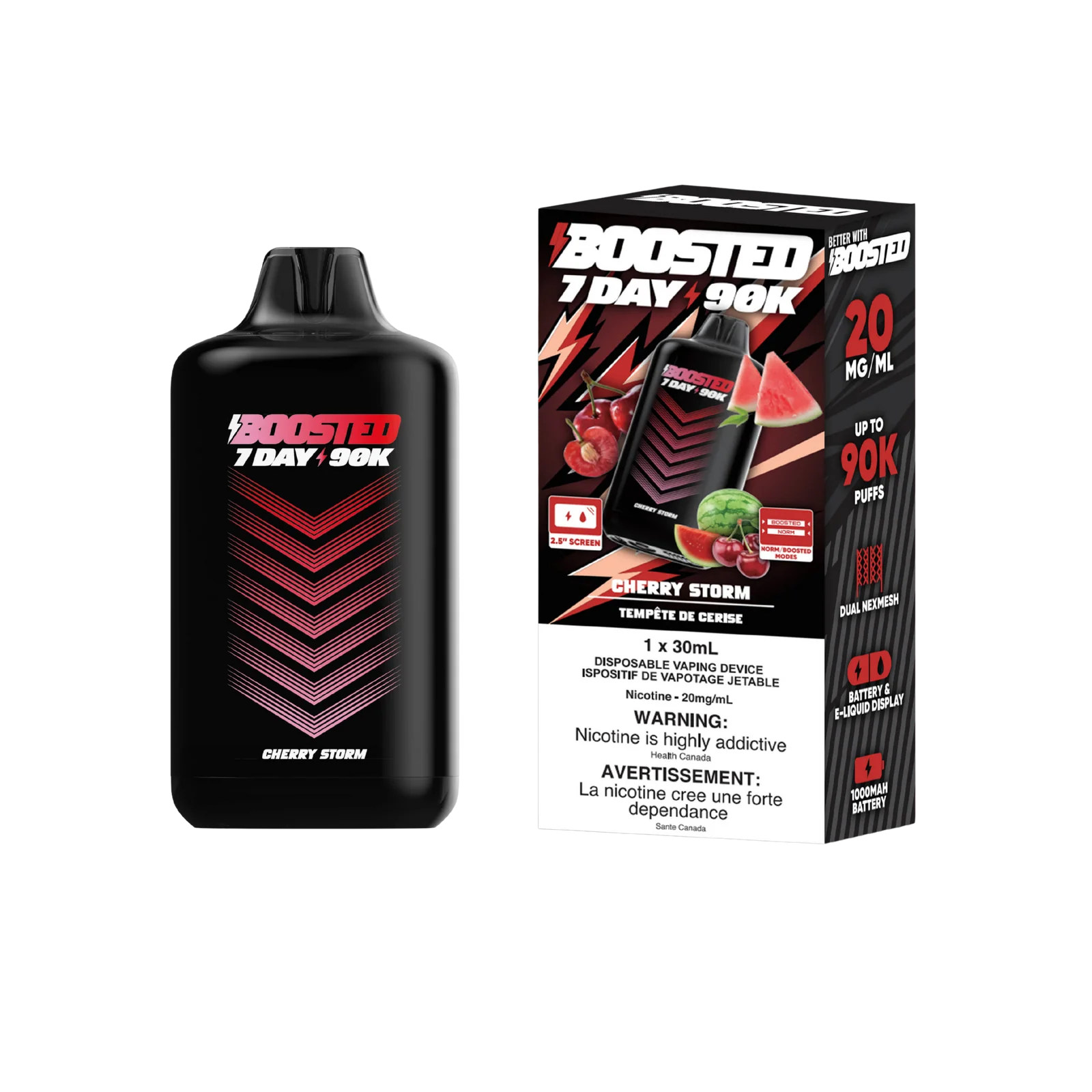 Boosted 7day 90k Cherry Storm 20mg/mL disposable (Provincial)